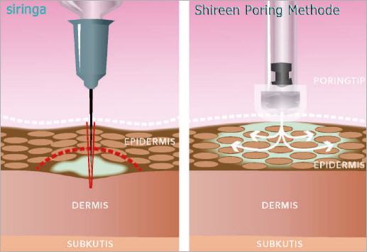 Il Shireen PoreJet invece, polverizza il fluido in modo dosato nei strati superficiali della pelle e praticamente indolore. Le rughe vengono lisciate e i depositi di umidità vengono ricaricati in modo sostenuto. Il modo naturale per una pelle bella! Un sorriso in 30 minuti! |